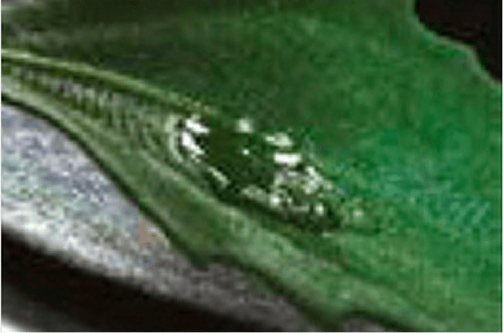 Example of improved droplet adhesion and canopy penetration on soybean with and without InterLock® technology in MasterLock® adjuvant.